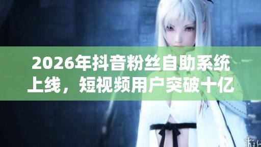 2026年,抖音正式上线了全新的粉丝自助系统,这一突破性的发展将短视频平台的用户体验推向了一个全新的高度。伴随着这一系统的推出,抖音的短视频用户数量也成功突破了十亿大关,标志着社交媒体和短视频行业进入了一个智能化的新纪元。 这一粉丝自助系统的设计,旨在为用户提供更加个性化的服务。用户可以通过该系统自助管理自己的账号,灵活调整内容推送策略,及时与粉丝互动。这种灵活性不仅提升了用户的创作效率,也增强了用户与粉丝之间的互动,形成了更加紧密的社交关系网。通过数据分析,用户可以准确把握粉丝的兴趣和偏好,从而创作出更符合市场需…